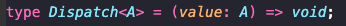 Dispatch는 함수형입니다. A 타입의 value라는 파라미터를 받고, 아무것도 리턴하지 않습니다. 요약하면 A라는 타입의 value로 값을 받을 수 있는 함수입니다.